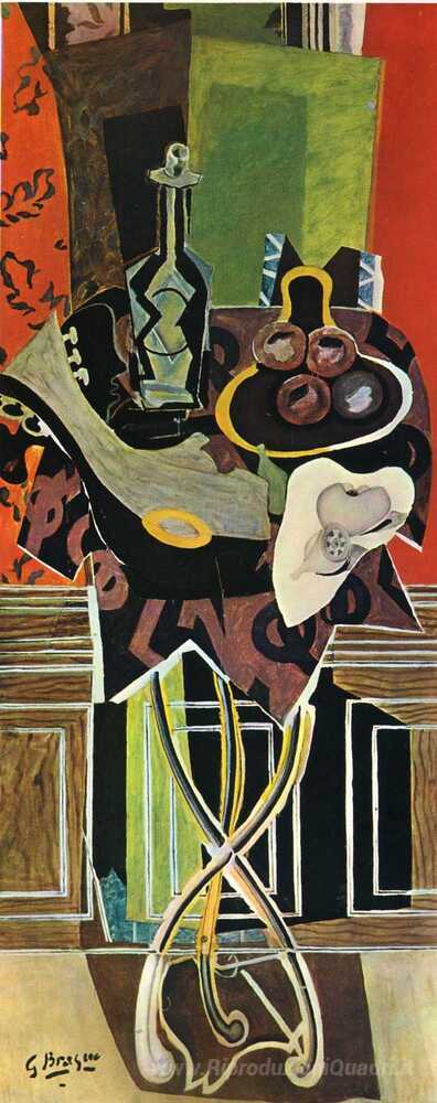 Ti offriamo una riproduzione artigianale su tela dell'opera famosa 'Un piedistallo rosso' di Georges Braque, dal Museo delle Riproduzioni.