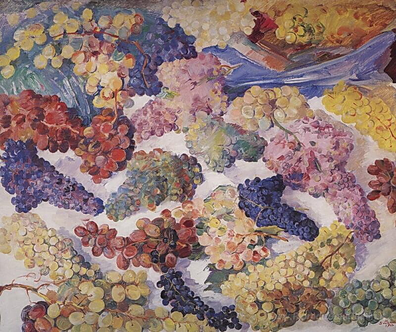 Ti offriamo una riproduzione artigianale su tela dell'opera famosa 'Uva' di Martiros Saryan, dal Museo delle Riproduzioni.