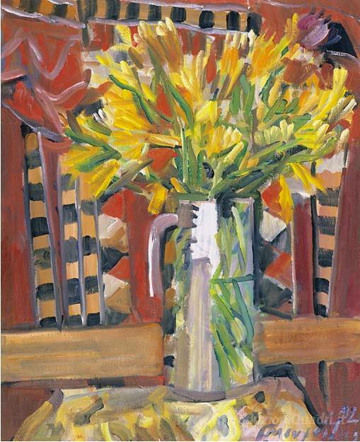 Ti offriamo una riproduzione artigianale su tela dell'opera famosa 'Vaso con fiori' di George Mavroides, dal Museo delle Riproduzioni.