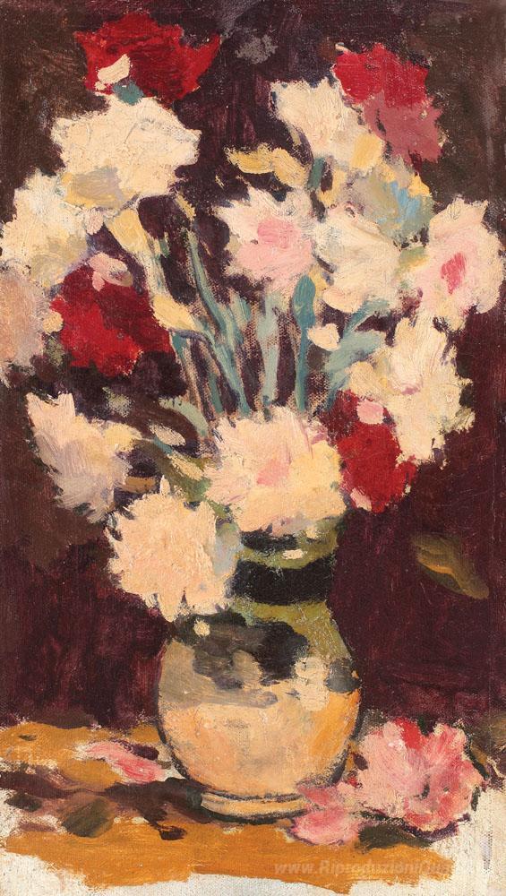 Ti offriamo una riproduzione artigianale su tela dell'opera famosa 'Vaso con garofani' di Stefan Luchian, dal Museo delle Riproduzioni.