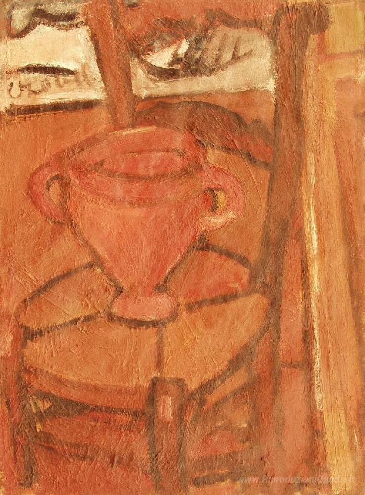 Ti offriamo una riproduzione artigianale su tela dell'opera famosa 'Vaso su una sedia (Jar italiano)' di Bela Czobel, dal Museo delle Riproduzioni.