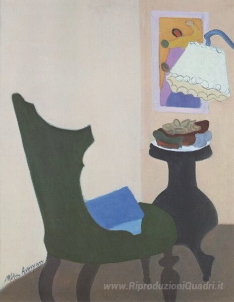 Ti offriamo una riproduzione artigianale su tela dell'opera famosa 'Verde Chair' di Milton Avery, dal Museo delle Riproduzioni.