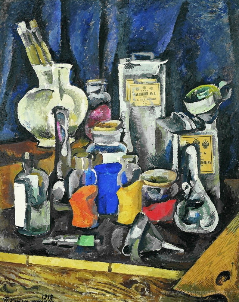 Ti offriamo una riproduzione artigianale su tela dell'opera famosa 'Vernici a secco' di Pyotr Konchalovsky, dal Museo delle Riproduzioni.