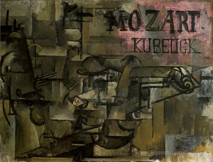 Ti offriamo una riproduzione artigianale su tela dell'opera famosa 'Violino di Mozart Kubelick' di Georges Braque, dal Museo delle Riproduzioni.
