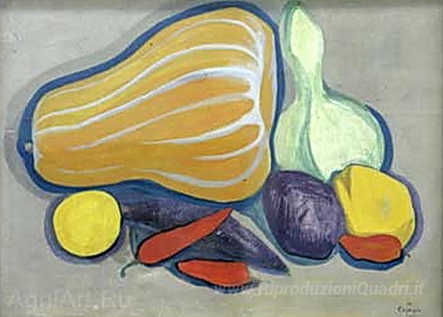Ti offriamo una riproduzione artigianale su tela dell'opera famosa 'Zucca e pepe' di Martiros Saryan, dal Museo delle Riproduzioni.