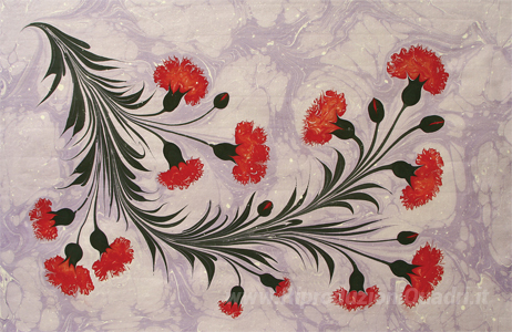 Ti offriamo una riproduzione artigianale su tela dell'opera famosa 'Floral Ebru' di Necmeddin Okyay, dal Museo delle Riproduzioni.