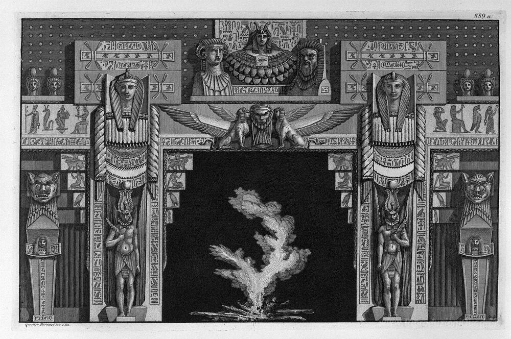 Scoprite l'incanto del dipinto a olio Camino in stile egizio, il fregio di un leone maschera tra due s, un'opera magistrale realizzata dal celebre artista italiano Giovanni Battista Piranesi. Rinomato per la sua abilità nel combinare architettura e arte, Piranesi trasmette attraverso questa creazione una profonda connessione con le influenze classiche, rendendo omaggio alla magnificenza dell'antico Egitto.