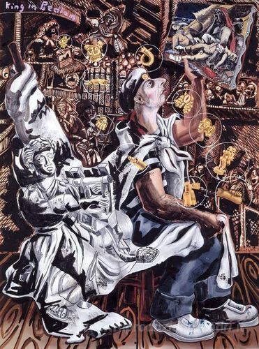 Ti offriamo una riproduzione artigianale su tela dell'opera famosa 'Re in Bedlam' di Jorg Immendorff, dal Museo delle Riproduzioni.
