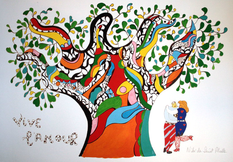 Ti offriamo una riproduzione artigianale su tela dell'opera famosa 'Vive l'amour' di Niki de Sainte Phalle, dal Museo delle Riproduzioni.