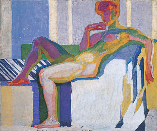 Ti offriamo una riproduzione artigianale su tela dell'opera famosa 'Aerei da colori (Gran Nudità)' di Frantisek Kupka, dal Museo delle Riproduzioni.