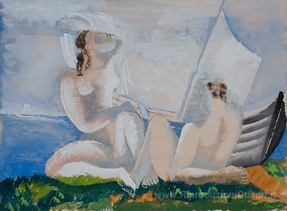 Ti offriamo una riproduzione artigianale su tela dell'opera famosa 'Al bordo dell'acqua' di Ossip Zadkine, dal Museo delle Riproduzioni.