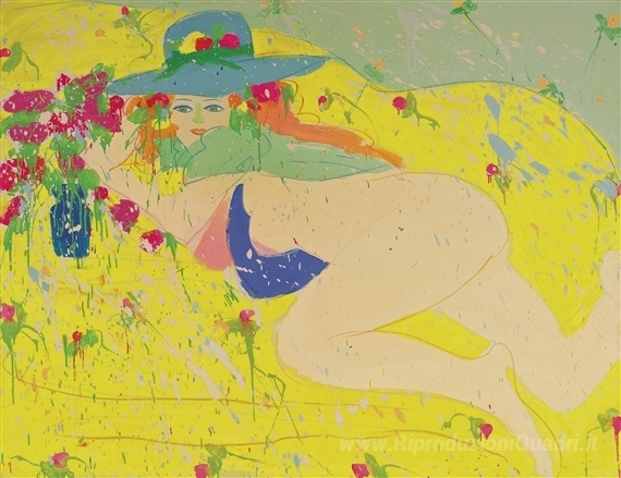Ti offriamo una riproduzione artigianale su tela dell'opera famosa 'Amore in Pomeriggio' di Walasse Ting, dal Museo delle Riproduzioni.