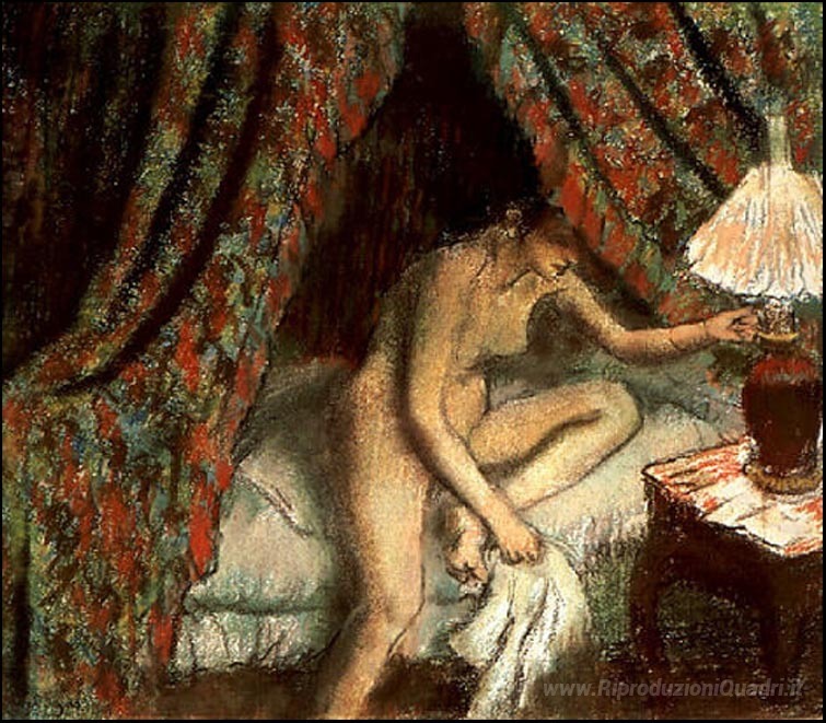 Ti offriamo una riproduzione artigianale su tela dell'opera famosa 'Andare in pensione' di Edgar Degas, dal Museo delle Riproduzioni.