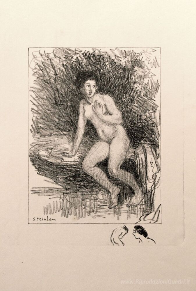 Ti offriamo una riproduzione artigianale su tela dell'opera famosa 'Au Bord de L'Eau' di Theophile Steinlen, dal Museo delle Riproduzioni.