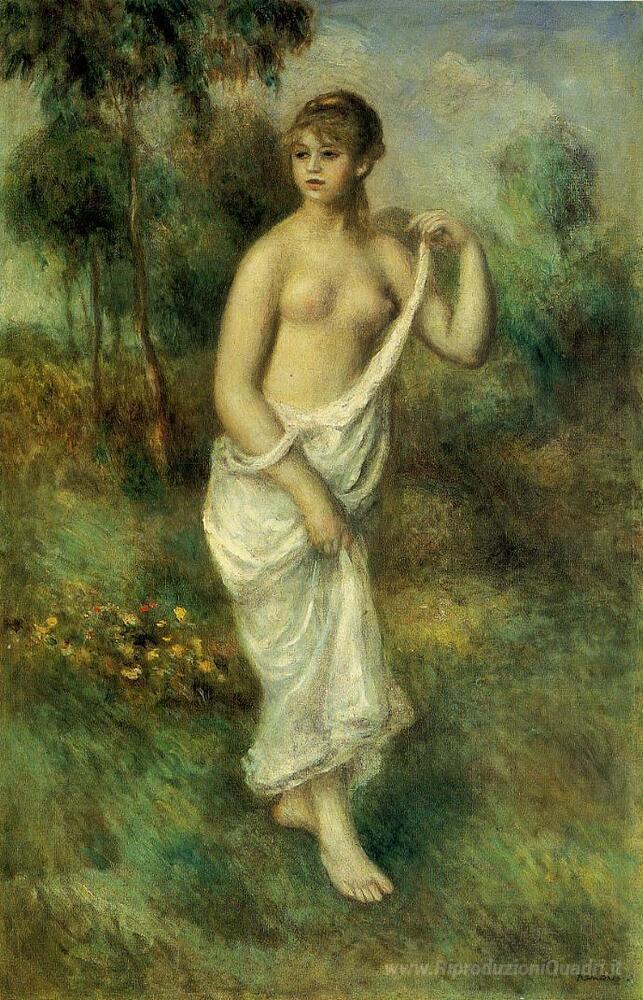Ti offriamo una riproduzione artigianale su tela dell'opera famosa 'Bagnante' di Pierre-Auguste Renoir, dal Museo delle Riproduzioni.