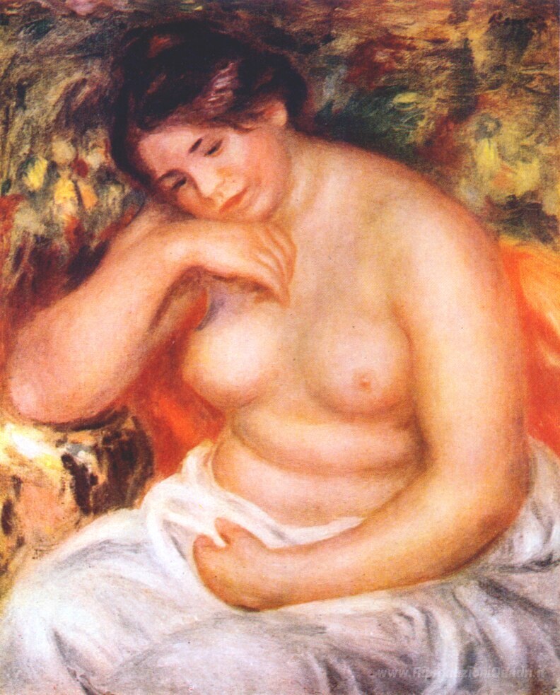 Scoprite l'impareggiabile bellezza del dipinto a olio Bagnante Seduti di Pierre-Auguste Renoir, un capolavoro che incarna la freschezza e la gioia della vita all'aria aperta. Renoir, uno dei più celebri esponenti del Impressionismo, utilizza una tavolozza vibrante per catturare la luce e il movimento, rendendo ogni pennellata una celebrazione della bellezza naturale. La sua abilità nell'uso del colore e della luce trasforma la scena in un inno alla vitalità e all'intimità.