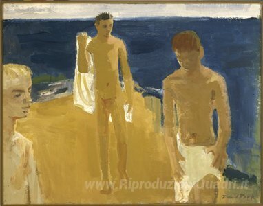 Ti offriamo una riproduzione artigianale su tela dell'opera famosa 'Bagnanti' di David Park, dal Museo delle Riproduzioni.