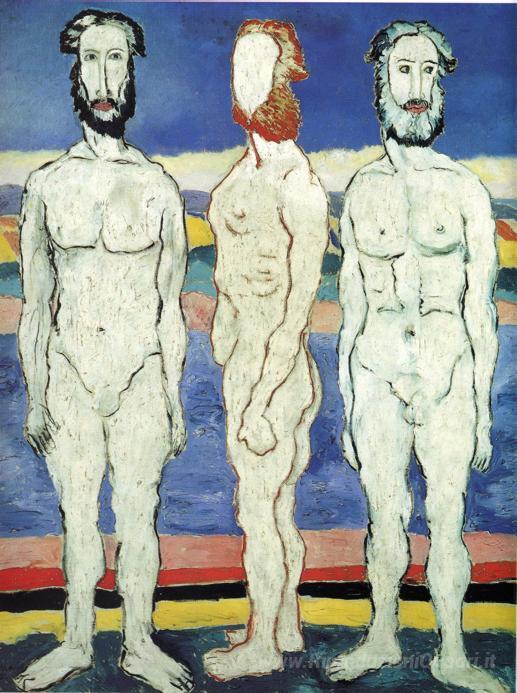 Ti offriamo una riproduzione artigianale su tela dell'opera famosa 'Bagnanti' di Kazimir Malevich, dal Museo delle Riproduzioni.