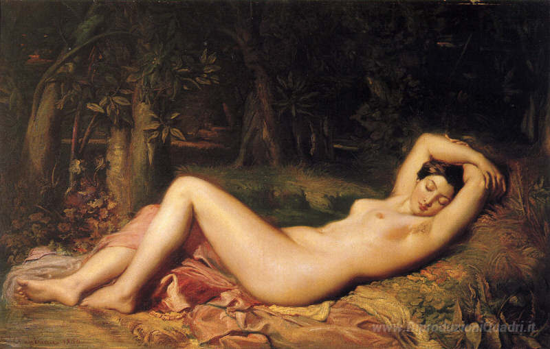 Ti offriamo una riproduzione artigianale su tela dell'opera famosa 'Baigneuse endormie' di Theodore Chasseriau, dal Museo delle Riproduzioni.
