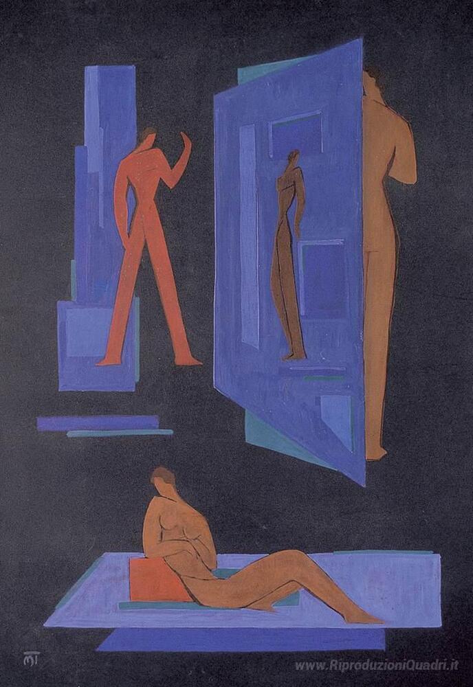 Ti offriamo una riproduzione artigianale su tela dell'opera famosa 'Composizione (Atteggiamenti)' di Janos Mattis-Teutsch, dal Museo delle Riproduzioni.