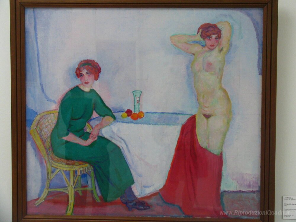 Ti offriamo una riproduzione artigianale su tela dell'opera famosa 'Composizione (terrestre e celeste Amore)' di Jan Sluyters, dal Museo delle Riproduzioni.