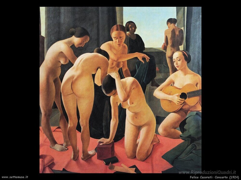 Ti offriamo una riproduzione artigianale su tela dell'opera famosa 'Concerto' di Felice Casorati, dal Museo delle Riproduzioni.