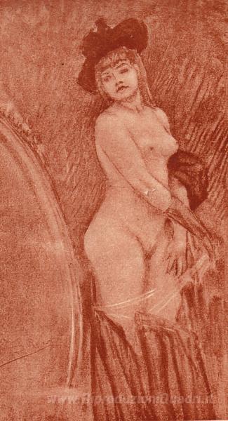 Ti offriamo una riproduzione artigianale su tela dell'opera famosa 'Coquette davanti ad uno specchio' di Felicien Rops, dal Museo delle Riproduzioni.