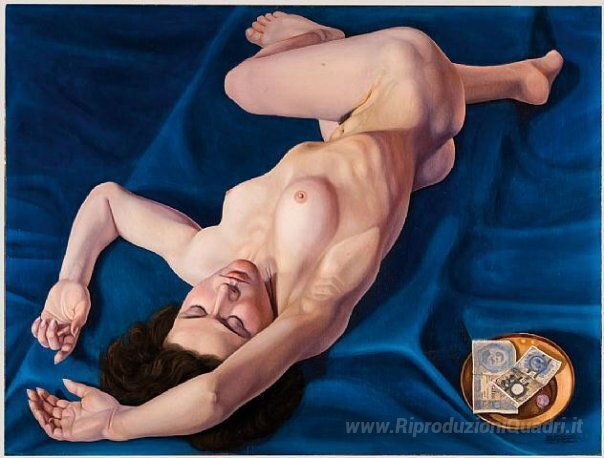 Ti offriamo una riproduzione artigianale su tela dell'opera famosa 'Denaro prima' di Cagnaccio di San Pietro, dal Museo delle Riproduzioni.