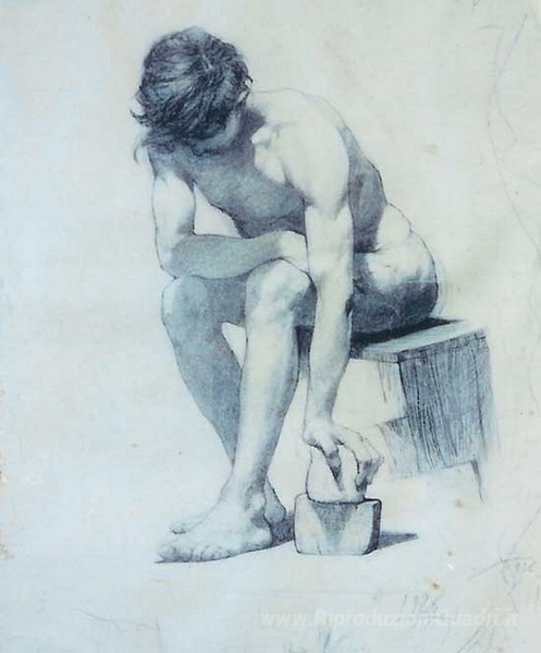 Ti offriamo una riproduzione artigianale su tela dell'opera famosa 'Disegno' di Alekos Kontopoulos , dal Museo delle Riproduzioni.