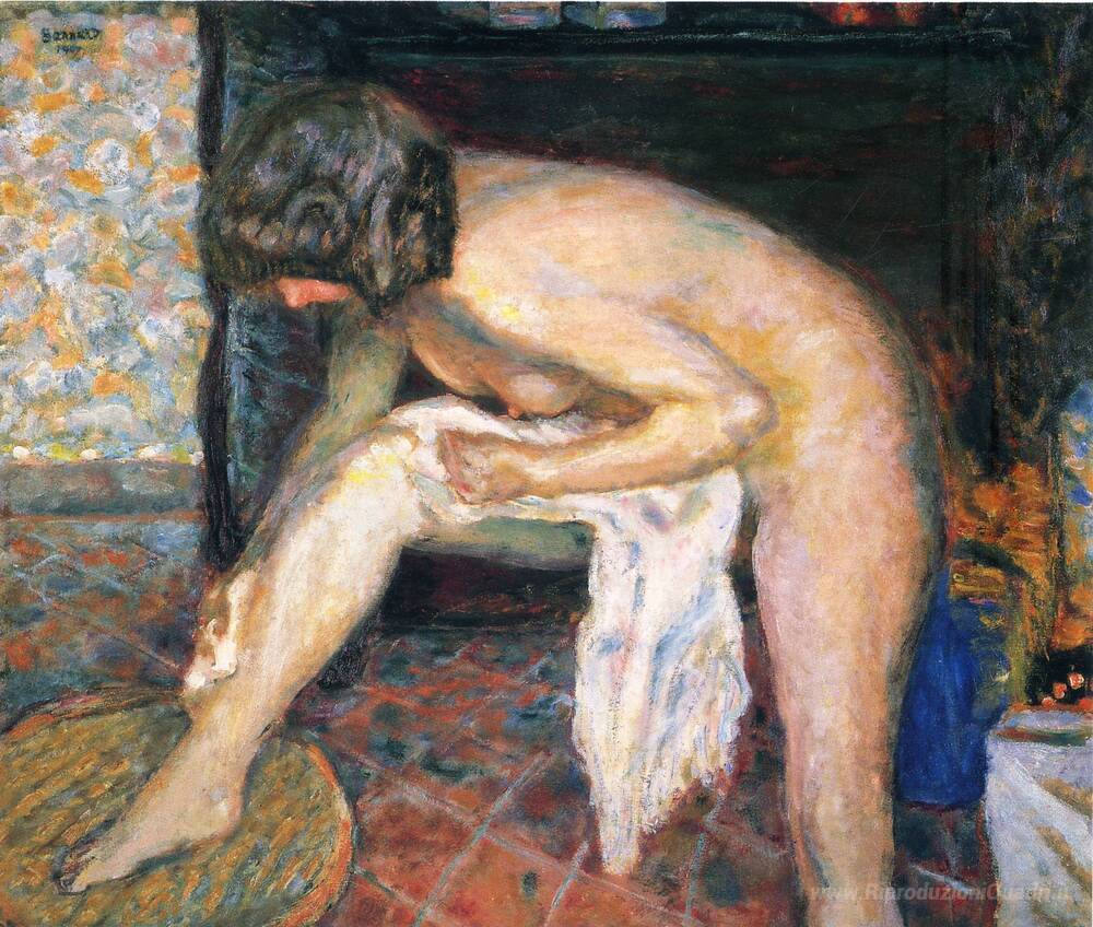 Con un’approfondita padronanza della tecnica a olio, Pierre Bonnard ci regala un'opera che parla direttamente al cuore, invitando lo spettatore a immergersi in un’atmosfera di serenità e contemplazione. La figura della donna, ritratta con colori caldi e pennellate morbide, non solo arricchisce l’ambiente, ma crea anche un dialogo con gli arredi circostanti. Ogni dipinto è una possibilità di portare l’arte nella vostra casa, creando un angolo di bellezza e ispirazione.
