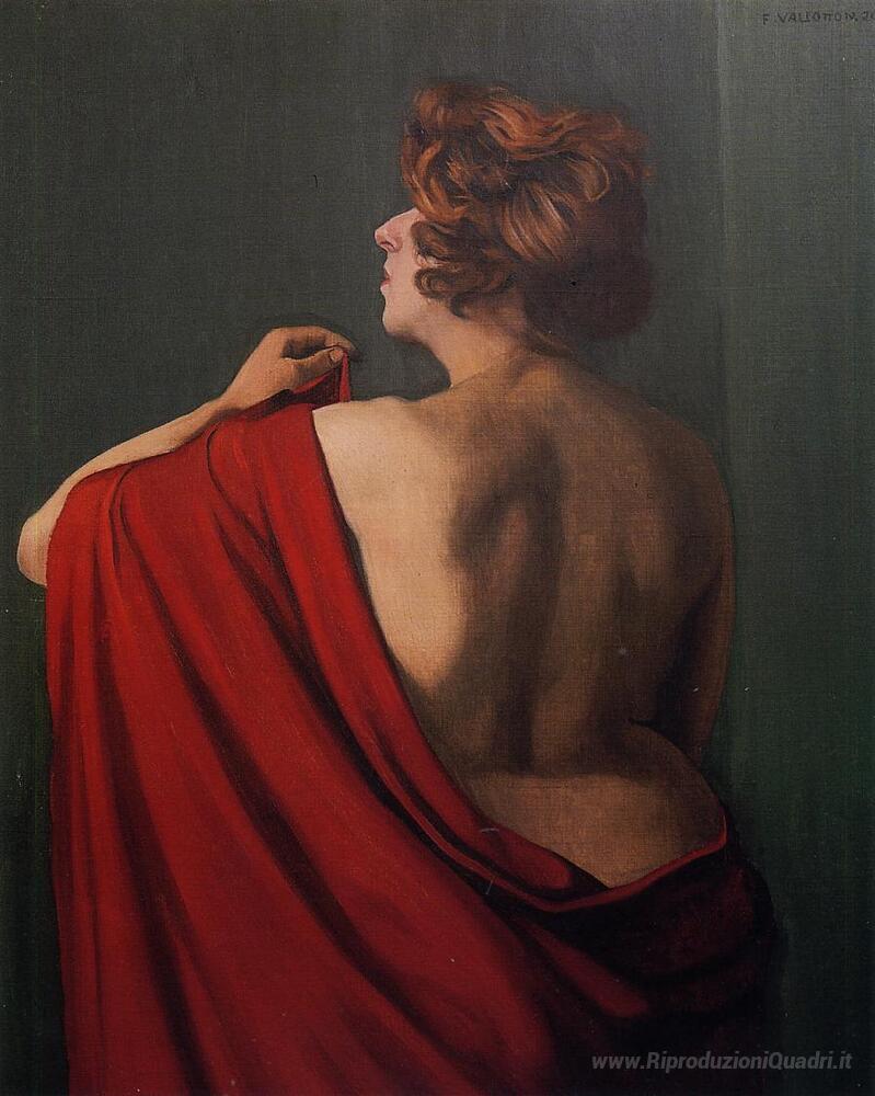 Ti offriamo una riproduzione artigianale su tela dell'opera famosa 'Donna con scialle rosso' di Felix Vallotton , dal Museo delle Riproduzioni.