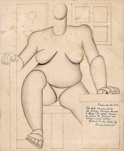 Ti offriamo una riproduzione artigianale su tela dell'opera famosa 'Donna di seduta cubista' di Otto Gustav Carlsund, dal Museo delle Riproduzioni.