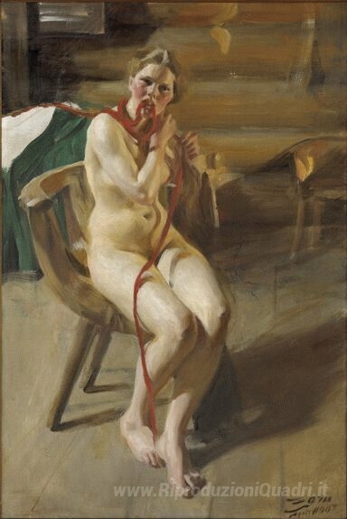 Ti offriamo una riproduzione artigianale su tela dell'opera famosa 'Donna nuda organizzando i suoi capelli' di Anders Zorn, dal Museo delle Riproduzioni.