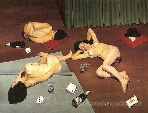 Ti offriamo una riproduzione artigianale su tela dell'opera famosa 'Dopo l'orgia' di Cagnaccio di San Pietro, dal Museo delle Riproduzioni.
