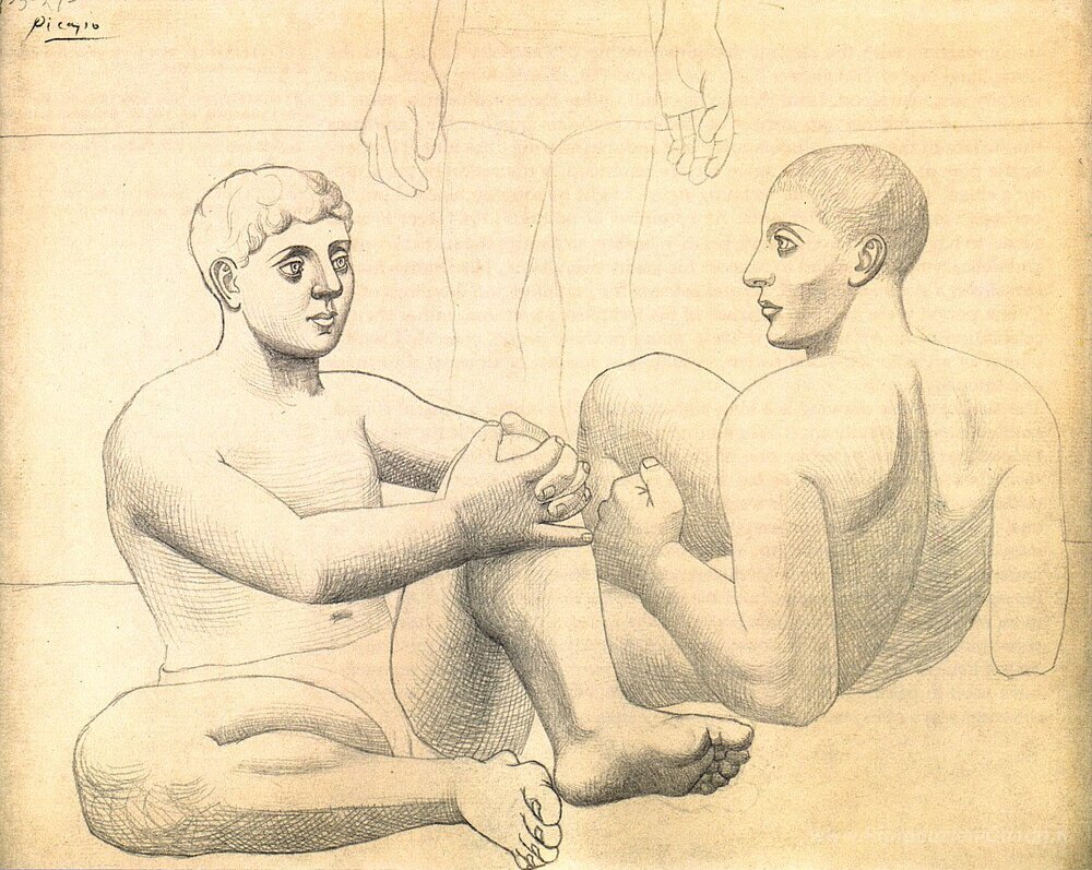 Ti offriamo una riproduzione artigianale su tela dell'opera famosa 'Due bagnanti' di Pablo Picasso, dal Museo delle Riproduzioni.