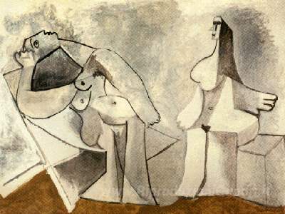 Ti offriamo una riproduzione artigianale su tela dell'opera famosa 'Due donne sedute' di Pablo Picasso, dal Museo delle Riproduzioni.