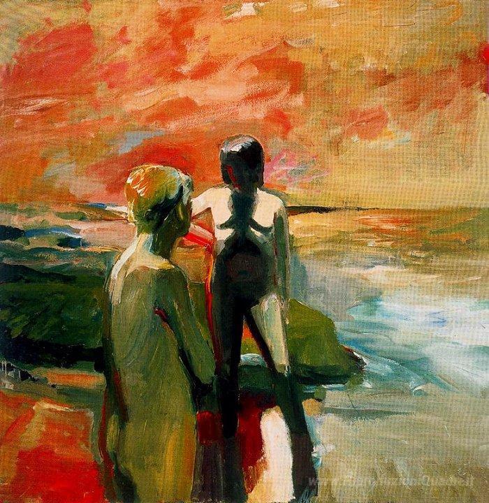 Ti offriamo una riproduzione artigianale su tela dell'opera famosa 'Due figure in riva al mare' di Elmer Bischoff, dal Museo delle Riproduzioni.