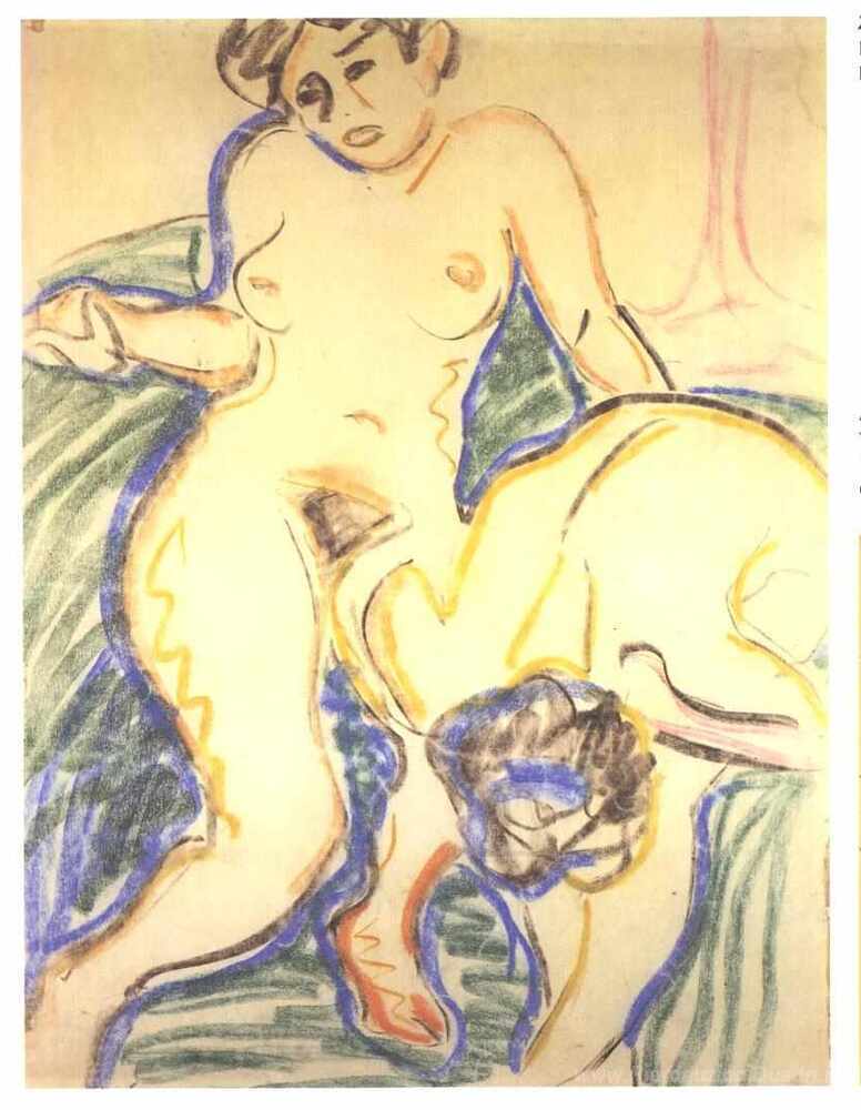 Ti offriamo una riproduzione artigianale su tela dell'opera famosa 'Due Nude Girls' di Ernst Ludwig Kirchner, dal Museo delle Riproduzioni.