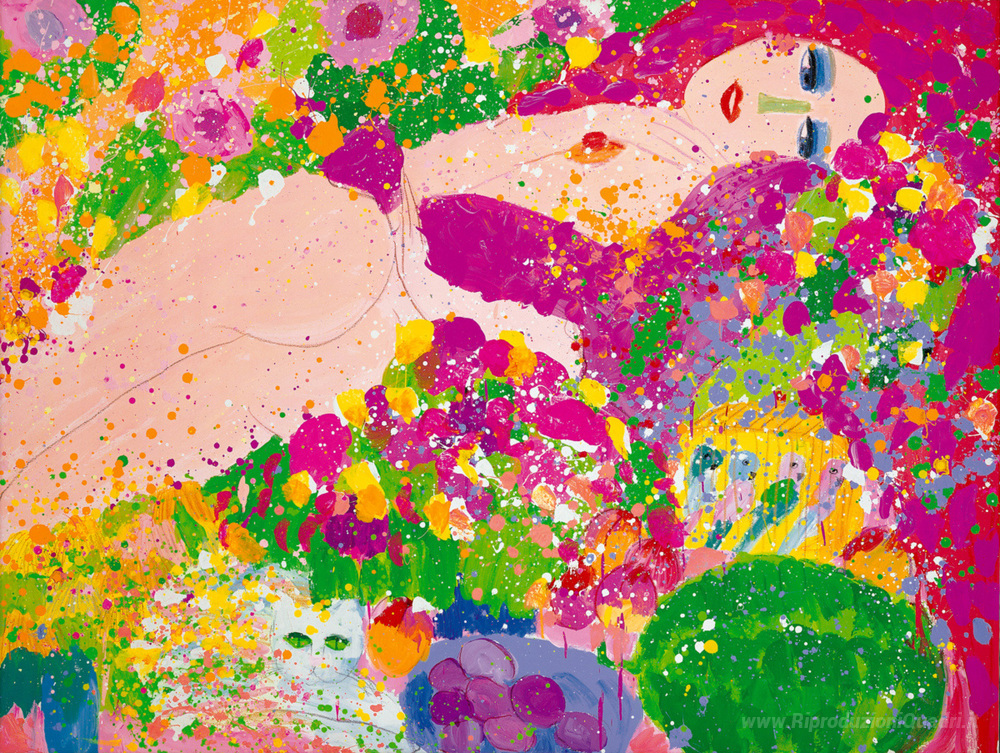 Ti offriamo una riproduzione artigianale su tela dell'opera famosa 'Fa molto caldo qui' di Walasse Ting, dal Museo delle Riproduzioni.