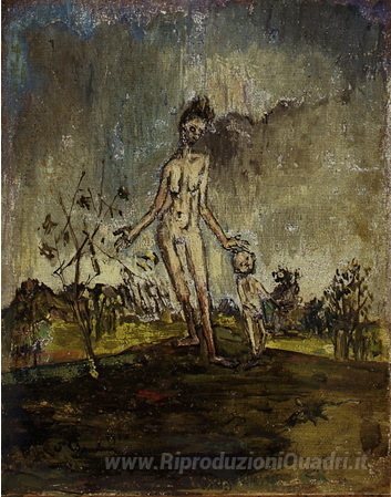 Ti offriamo una riproduzione artigianale su tela dell'opera famosa 'Femme et enfant' di Francis Gruber, dal Museo delle Riproduzioni.