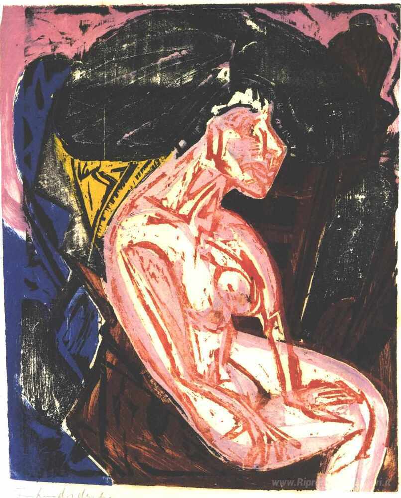 Ti offriamo una riproduzione artigianale su tela dell'opera famosa 'Femminile Lover' di Ernst Ludwig Kirchner, dal Museo delle Riproduzioni.