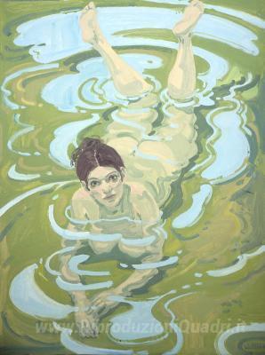 Ti offriamo una riproduzione artigianale su tela dell'opera famosa 'Figura in acqua' di Neil Welliver, dal Museo delle Riproduzioni.