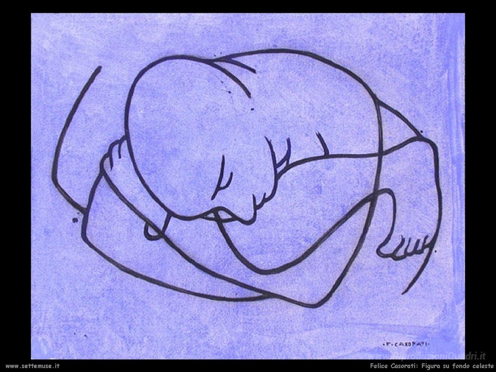 Ti offriamo una riproduzione artigianale su tela dell'opera famosa 'Figura su fondo celeste' di Felice Casorati, dal Museo delle Riproduzioni.