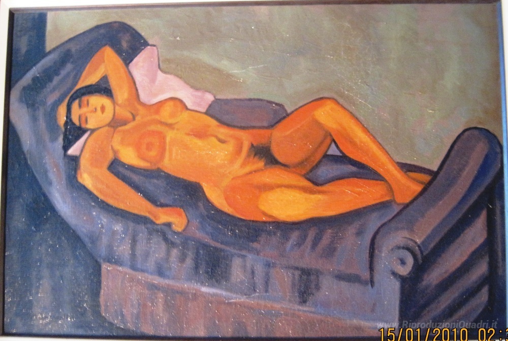 Ti offriamo una riproduzione artigianale su tela dell'opera famosa 'Hommage a Modigliani [Nudo]' di Jury Annenkov, dal Museo delle Riproduzioni.