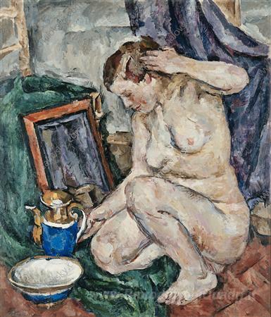 Ti offriamo una riproduzione artigianale su tela dell'opera famosa 'Il modello squatting' di Pyotr Konchalovsky, dal Museo delle Riproduzioni.