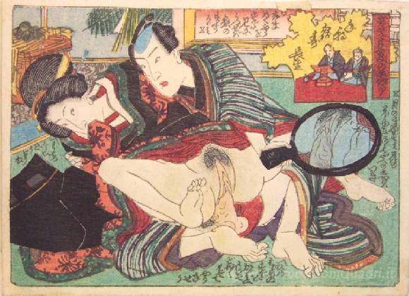 Ti offriamo una riproduzione artigianale su tela dell'opera famosa 'Il Specchietto' di Utagawa Kunisada, dal Museo delle Riproduzioni.