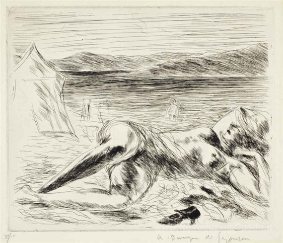 Ti offriamo una riproduzione artigianale su tela dell'opera famosa 'La Cure de Soleil' di Andre Dunoyer de Segonzac, dal Museo delle Riproduzioni.