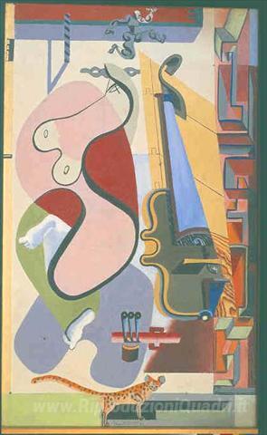Ti offriamo una riproduzione artigianale su tela dell'opera famosa 'La danseuse et le petit félin' di Le Corbusier, dal Museo delle Riproduzioni.