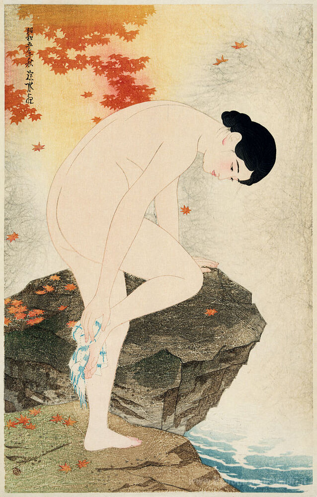Ti offriamo una riproduzione artigianale su tela dell'opera famosa 'La fragranza di una vasca da bagno' di Ito Shinsui, dal Museo delle Riproduzioni.