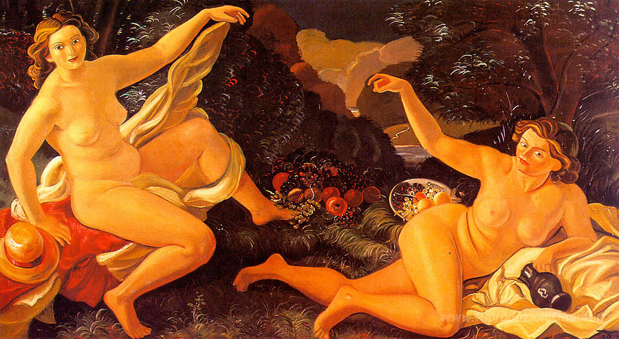 Ti offriamo una riproduzione artigianale su tela dell'opera famosa 'La radura, o del pranzo sul prato' di Andre Derain, dal Museo delle Riproduzioni.